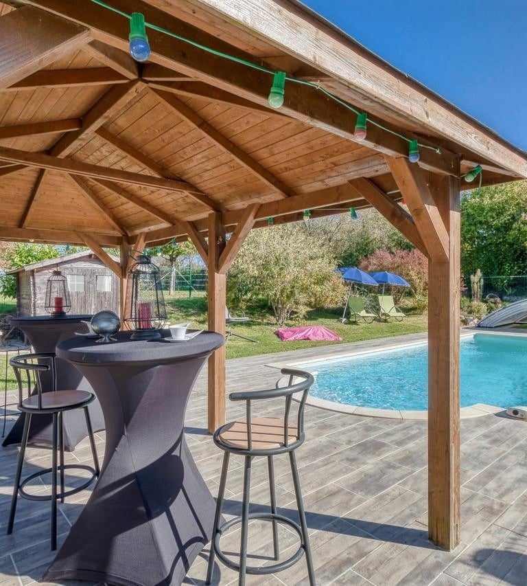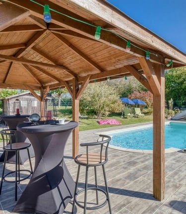 Nous habitons un ancien corps de ferme. Nous avons aménagé notre unique maison d'hôtes dans l'une des dépendances. Nous partageons avec vous 7000 m2 de terrain avec étang, piscine privée mais non privatisable, jardin potager, poulailler. Vous êtes chez vous, tout en étant chez nous. La météo ne permet pas de profiter de la piscine... Nous vous proposerons pleins d'autres activités. Venez vous ressourcer en profitant de notre maison d'hôtes pour 4 personnes maximum et seulement 4 personnes.......